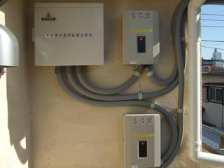 ベランダには接続箱と昇圧回路を取付いたしました。取り付ける位置にご希望がありましたので、ギリギリな感じにはなりましたが、ピッタリ取付できました。お施主様も電気代が安くなって大変満足しておられました。S様ご依頼ありがとうございました。計算通りいっぱい発電してくれる思います!