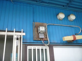 電気メーターも容量をアップして新しいものに交換いたしました。左側の木板タイプは従来のもので最近では使用しなくなっております(腐るので..)。