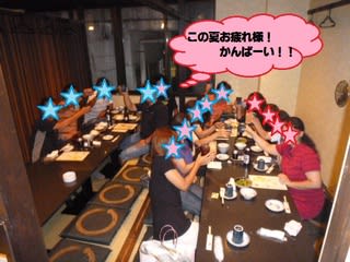 この夏のお疲れさん会ということで同学年父兄で懇親会をいたしました。かなりの出席率で皆さんありがとうございま~す。この夏は最後の合宿もあり、この日も炎天下の中練習試合の後集合いたしました。