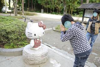 次男はキティーちゃん石造を発見して、まずは願かけしていましたよ!!