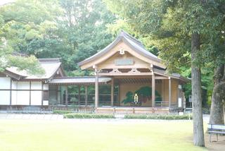 灯篭が並び、少し入ったところの左側に舞台のような建物がありました。たぶん能などを行う場所なのではと勝手に思いながら先へ進むと・・・。