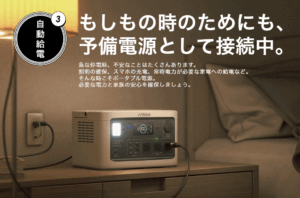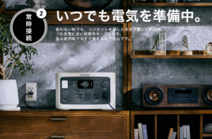 家で使用するときはポータブル電源のコンセントを使用すると便利。