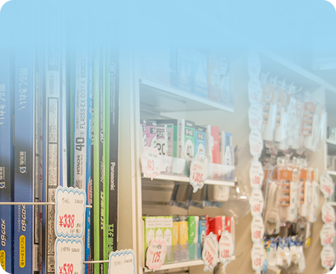 店舗では管球・電池類を豊富に揃えております。その他にも一般家電品、照明器具、電気配線器具など、お客様の生活に必要な商品を豊富に取り揃えております。部品、部材、消耗品のお取り寄せも承っておりますので、お問い合わせ下さい。※一部メーカー等お取扱い出来ない製品がございますので、予めご了承下さい。